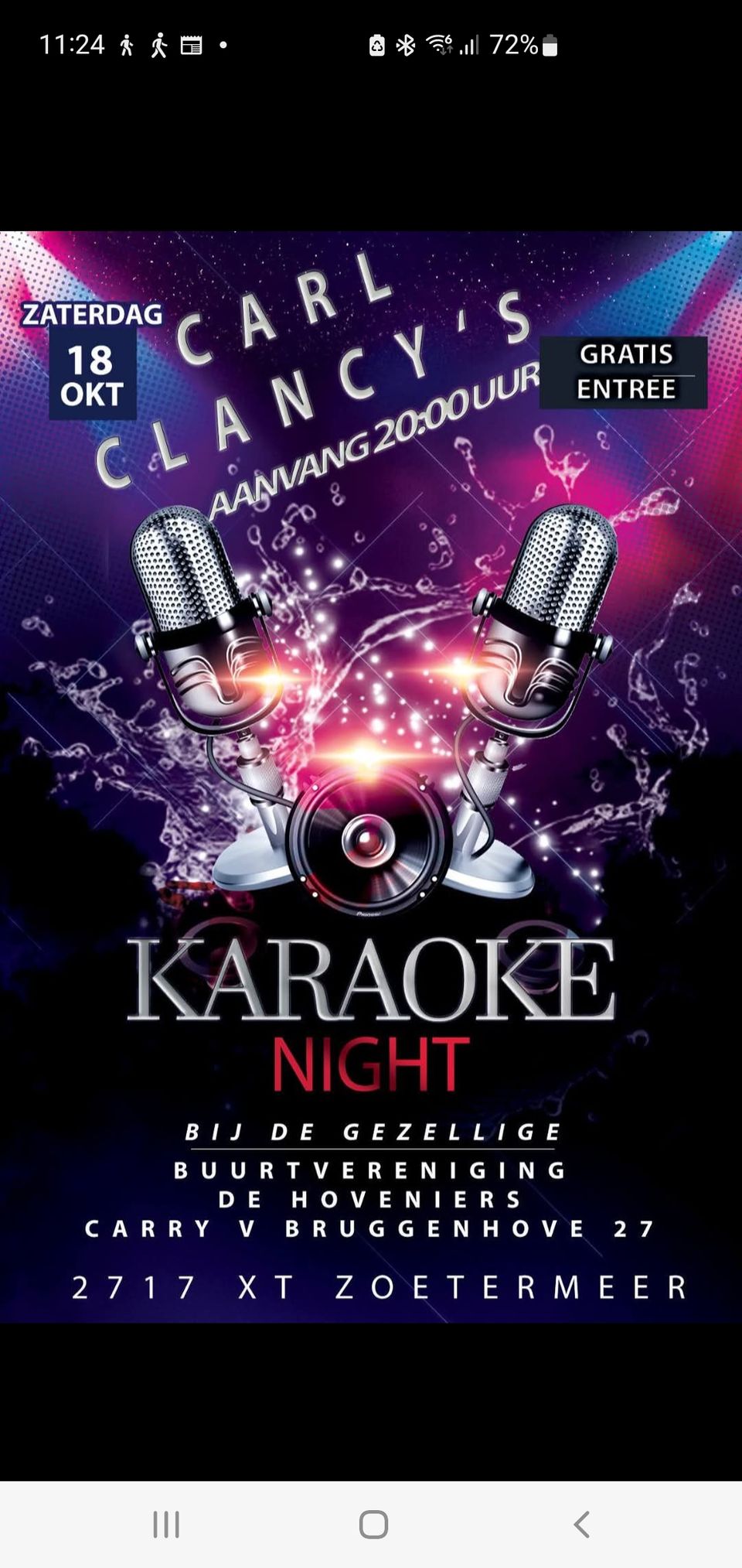 De Organisatie staat onder de professionele leiding van Carl Clancy's. Vindt je het leuk en gezellig om eens zelf je favoriete liedjes te zingen? Kom dan op 19 oktober naar onze buurtruimte en doe gezellig mee.