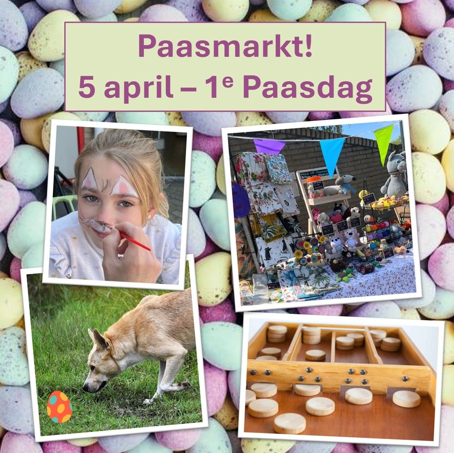 Ook dit jaar wordt er op 5 april (eerste Paasdag) weer een gezellige paasmarkt georganiseerd op het terrein van Dierentehuis Zoetermeer! Er zijn verschillende activiteiten voor mens en dier. Kom je ook?