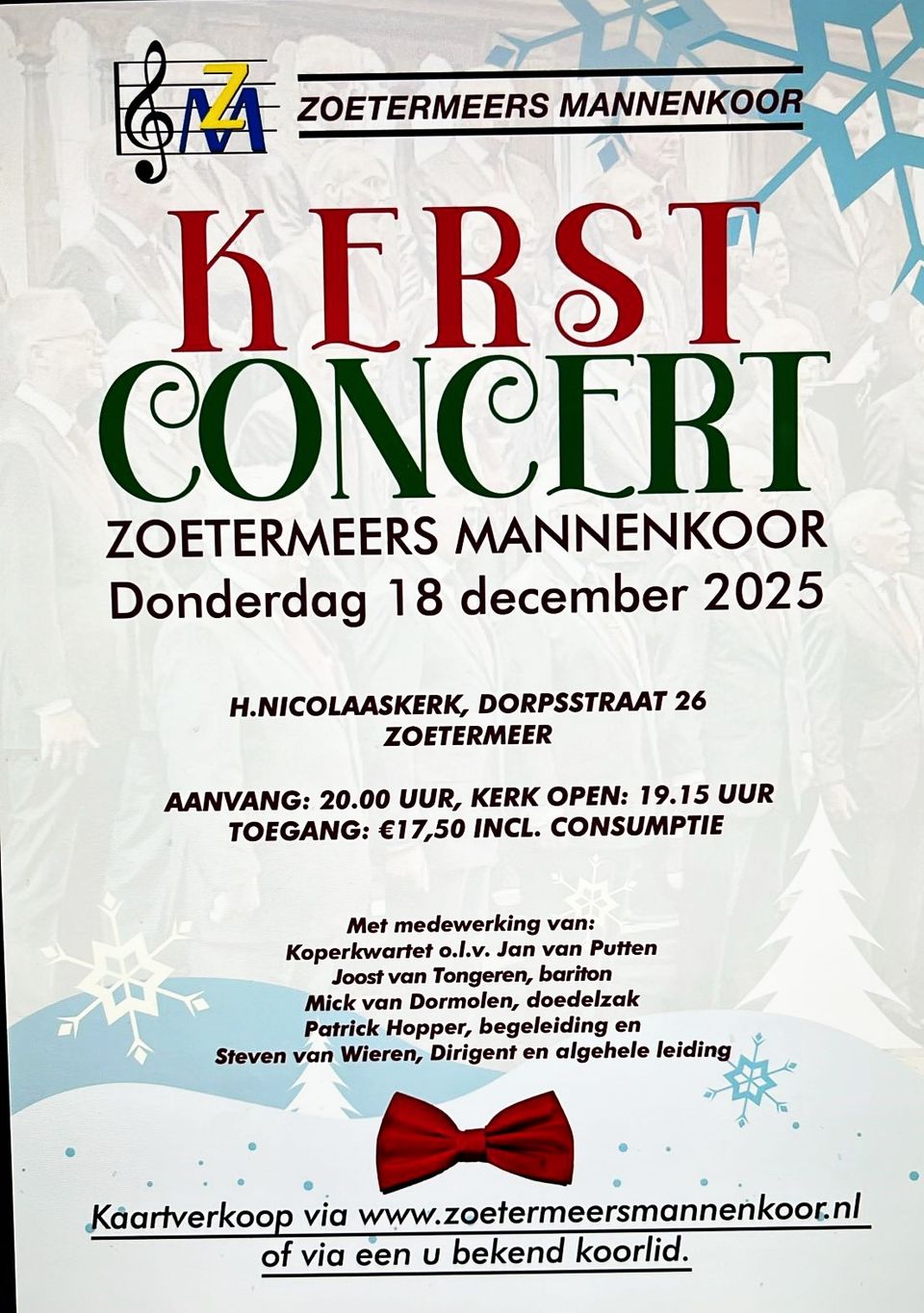 Kaarten: € 17,50 - verkrijgbaar via onze website www.zoetermeersmannenkoor.nl of via leden van het koor.