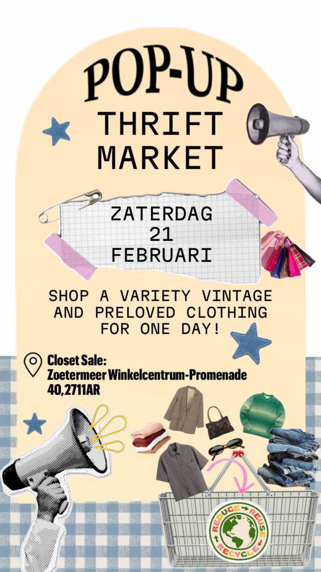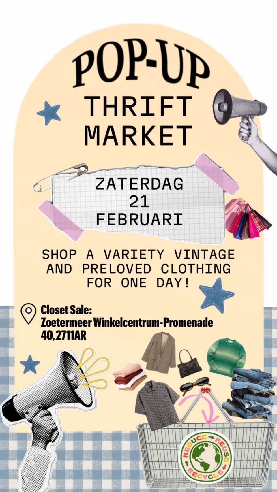 Ontdek de nieuwste secondhand pop-up shop in Zoetermeer! In deze tijdelijke thrift shop vind je een unieke selectie tweedehands kleding, accessoires en lifestyle items met karakter. Of je nu op zoek bent naar vintage stukken, duurzame mode of betaalbare musthaves, er is voor ieder wat wils.