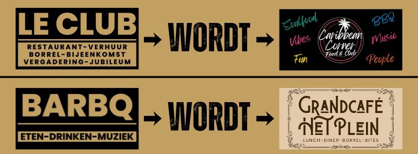 De locatie Dorpsstraat 114BE(BARBQ) heet voortaan Grandcafé Het Plein, een laagdrempelig grand café waar gasten welkom zijn voor lunch, borrel, diner of een drankje. Een pubquiz, een vrijmibo of een bierproeverij, je kan er elke week iets anders verwachten. Vanaf het nieuwe jaar gaat hier een vernieuwde kaart in , met herkenbare favorieten zoals een huisgemaakt broodje bal, een sateetje of de lekkerste spareribs van Nederland. Kwaliteit, betaalbaarheid en gastvrijheid staan centraal.