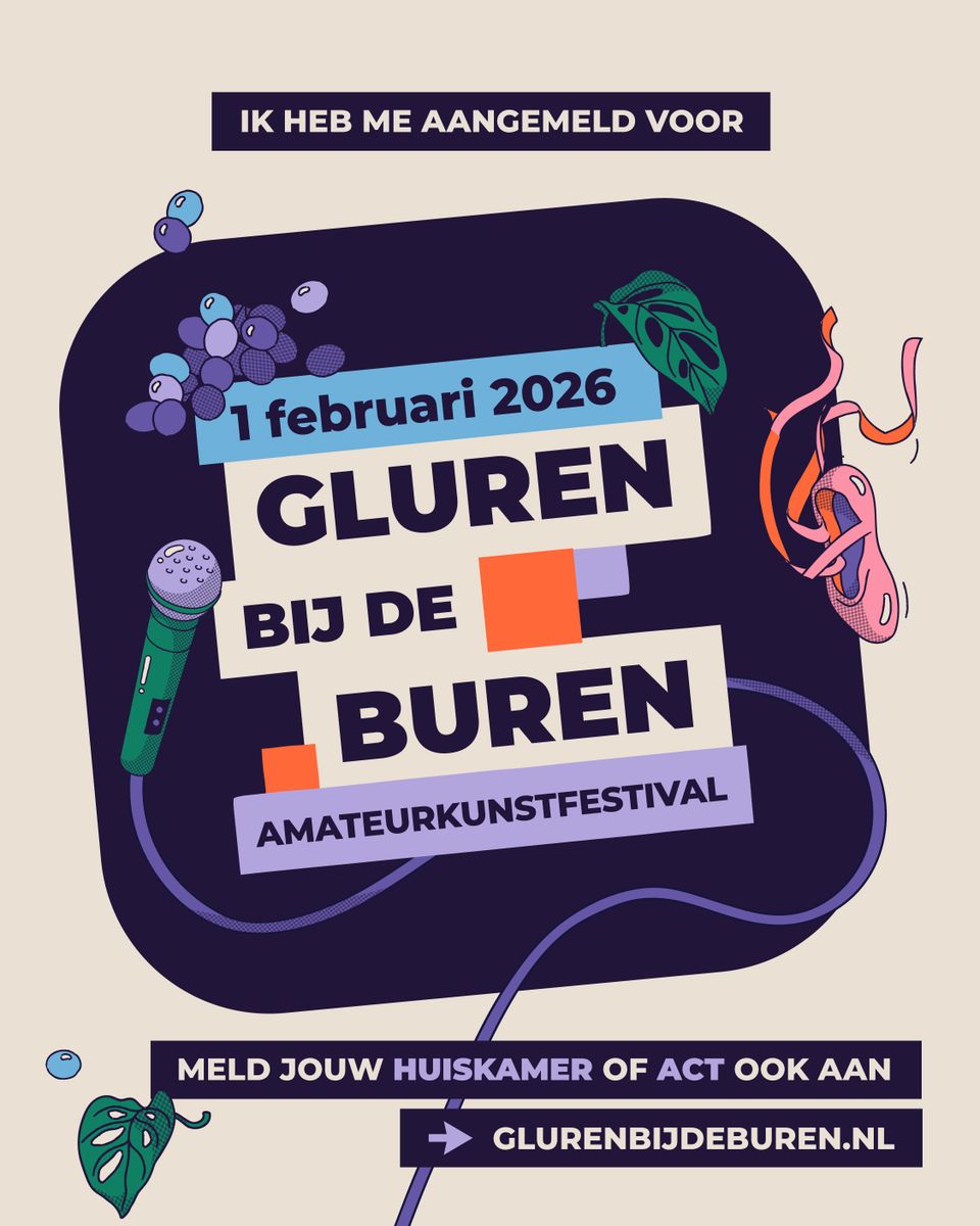 Intieme optredens van dansers, muzikanten, theatermakers, sprekers en andere podiumkunstenaars barsten los achter de voordeur van gastvrije buren. Meld je aan en maak jouw huiskamer of optreden onderdeel van GBDB! Van portiekflat tot rijtjeshuis tot bungalow: huiskamers in al hun gedaanten vormen het terrein van het grootste huiskamerfestival van Nederland. Vertoon je podiumkunsten op een intiem podium tussen boekenkasten en kamerplanten.